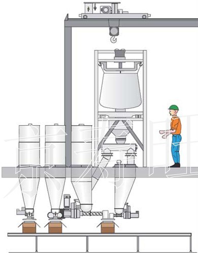 4、輸送位置可根據(jù)生產(chǎn)需要,從大袋直接輸送到料倉、反應(yīng)釜、混合罐、粉碎機(jī)、攪拌罐、稱重罐等